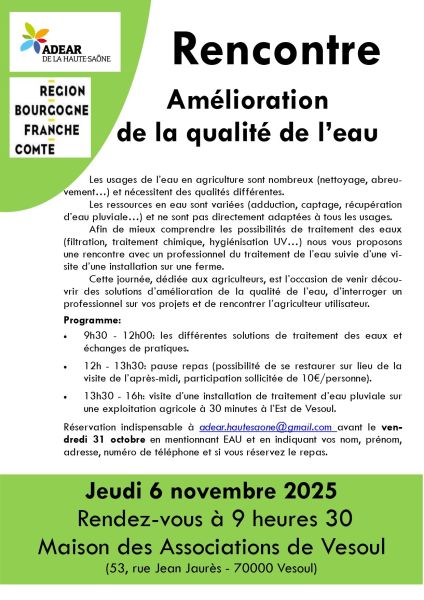 Rencontre amélioration de la qualité de l'eau - ADEAR de la Haute-Saône