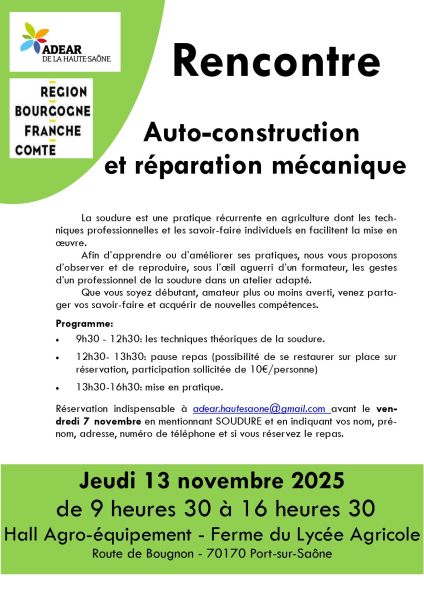 Rencontre auto-construction et réparation mécanique - ADEAR de la Haute-Saône